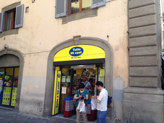 Along the trek, I visited a couple of hardware stores - there's a foot pedal sink faucet I've seen several times in Italy I really want to locate; it would be just the thing in the kitchen, when you have your hands full and want to turn on the water to wash something. The ferramenti were very much like old time hardware stores in the States, but very limited in space and selection - not exactly Home Depot, yet still very familiar. No sign of faucets. I may have to find a plumbing store. Another fun discovery was a 99 Cent store. Cheapest soda and juices to buy anywhere in the city.